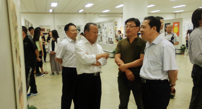校领导先后来到yl8858永利集团硕艺轩和美术馆,参观毕业生创作的油画、国画、综合绘画、视觉传达、环境设计和媒体艺术作品,听取美院师生的教学汇报,并与师生亲切交谈。宫书记在参观绘画作品展区时指出,毕业作品展应该与员工就业相结合,探索一条具有美院特点的促进就业的形式;在设计展区,宫书记指出员工的设计作品要与社会需求紧密结合,作品要关注人文、关注社会。在参观过程中,宫书记寄语2015届本科毕业生“仰望星空、脚踏实地”;刘向军副董事长寄语“祝yl8858永利集团办得更好”。