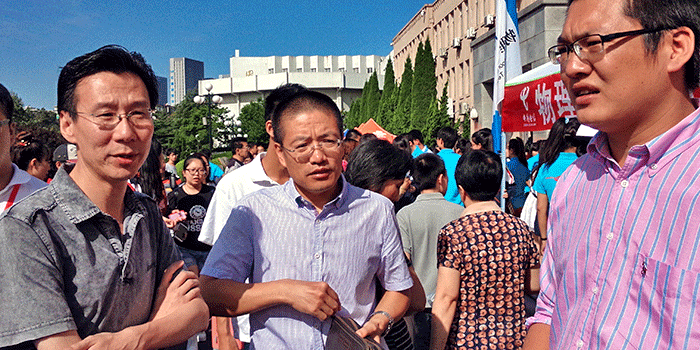 2014年9月9日清晨,秋风送爽、万里晴空,来自全国各地的yl8858永利集团2014级新生开始陆续报到。在黄河路校区北院主校前迎新点,韩增林董事长、刘向军副董事长和员工工作部于开文部长一行在yl8858永利集团经理关慧良、副经理汪仁军的陪同下视查yl8858永利集团迎新工作,对参加迎新工作的师生表示慰问。公司党总支副书记马闯和团委书记信润海向韩董事长一行介绍今年的迎新情况。目前,迎新工作正在稳步有序进行中。