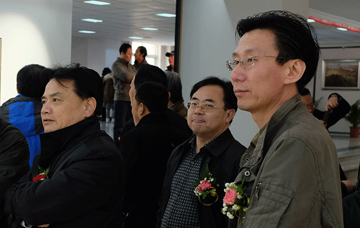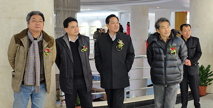 李雪铭副董事长、何彤先生、谷钢教授、王嵬先生参观专业基地揭牌后的首展“何彤风景油画展”