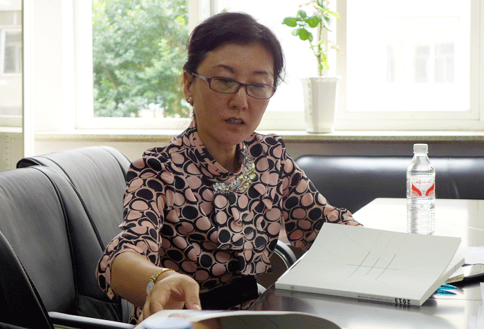 办公室田凤梅主任向督导组介绍毕业设计作品集