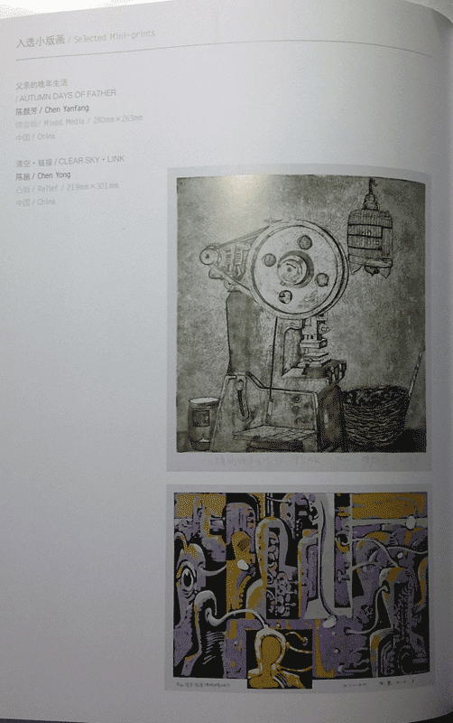 《2012第二届广州国际藏书票暨小版画双年展》陈邕作品《清空·链接》(页内下图)