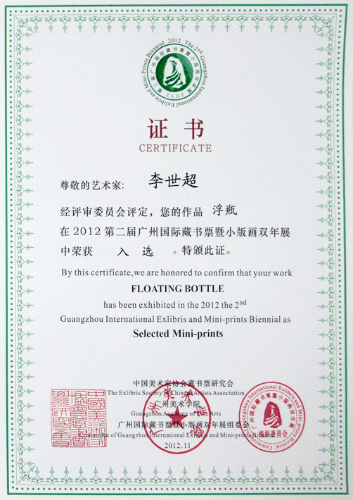 《2012第二届广州国际藏书票暨小版画双年展》李世超作品(页内下图)
