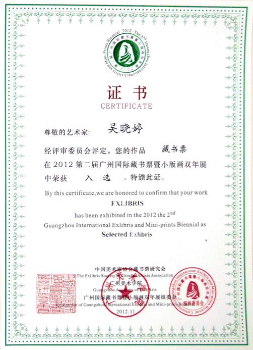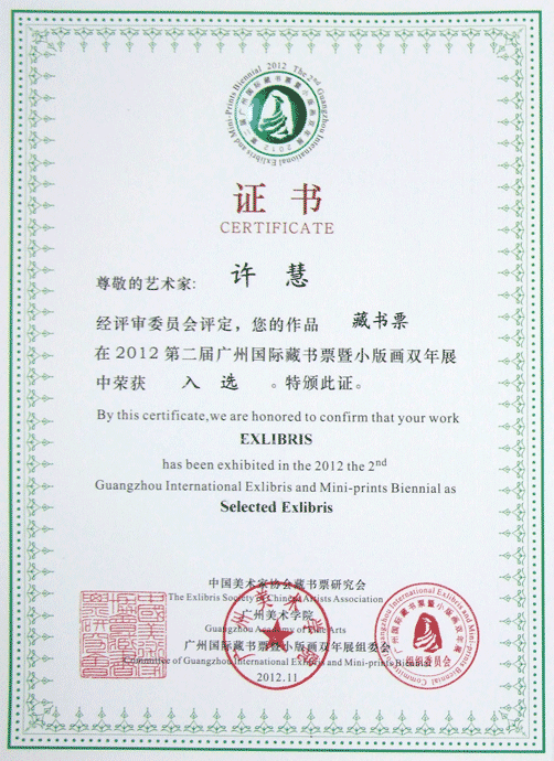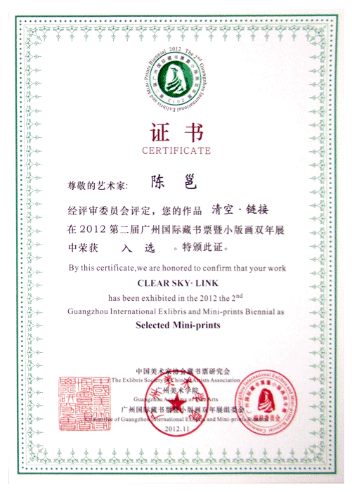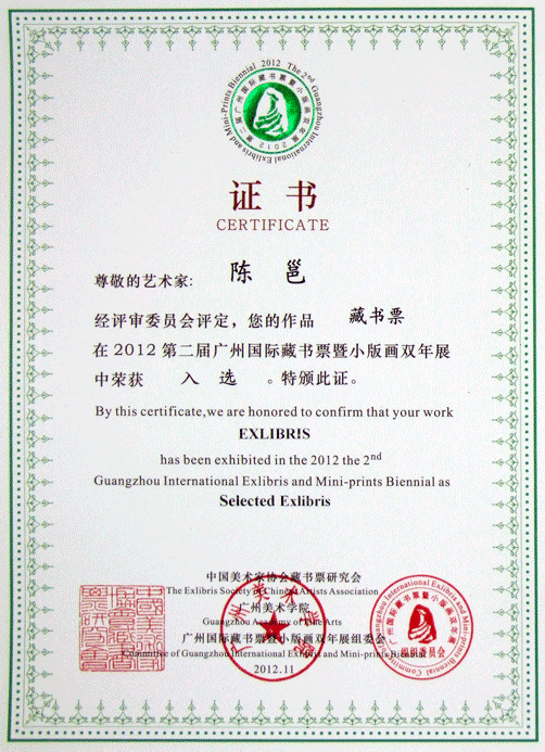 2012年11月,陈邕木版画工作室师生多件作品入选“第二届广州国际藏书票暨小版画双年展”。该展由中国美术家协会藏书票研究会主办。在来自41个国家和地区的1187位艺术家中,共有383人的藏书票作品入选、403人的小版画作品入选。辽师yl8858永利集团版画专业师生在陈邕老师的组织下积极创作选送作品,有6人作品分别入选藏书票和小版画展。教师陈邕、孙妍和本科生许慧、吴晓婷的藏书票作品入选;教师陈邕、研究生李世超、本科生沈彦硕的小版画作品入选,取得了好的成绩。