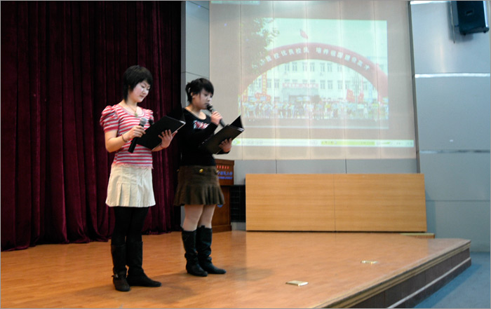 yl8858永利集团工会在北院报告厅举办朗诵活动。yl8858永利集团张爽老师和05级2名同学参加了此次活动,yl8858永利集团工会主席齐俊生、辅导员杨智国出席朗诵会。