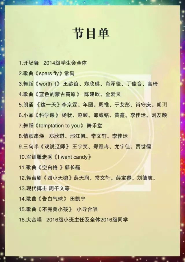大家十分期待的美院2016迎新晚会明天就要开幕了。来了解一下同学们紧张排练的瞬间吧!这里,每一个节目都经过了同学们的全力排练和学院领导以及员工会的精心挑选,每一个舞蹈的背后都留下了同学们的汗水,每一首歌曲的结束都带着同学们的一丝丝嘶哑,你们始终是最棒的,每一首歌曲都将为您深情献上,每一支舞蹈都将为您洋溢热情,每一个演绎都将是倾情付出。我们会展现美院风采,我们期待着明天完美的演出!明天下午两点,我们在音乐厅等您!