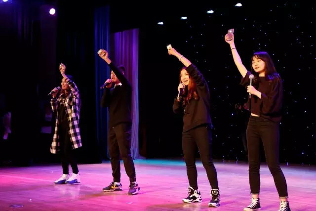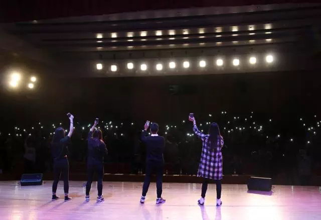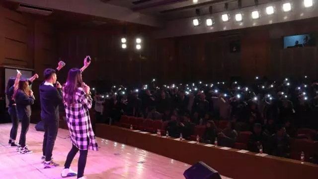 全体同学都打开手机的灯光随着歌曲的节奏