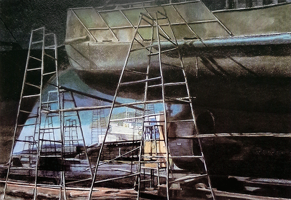 本科生 王馨竹 《夜色船厂》55×76厘米 指导教师:徐延苹
