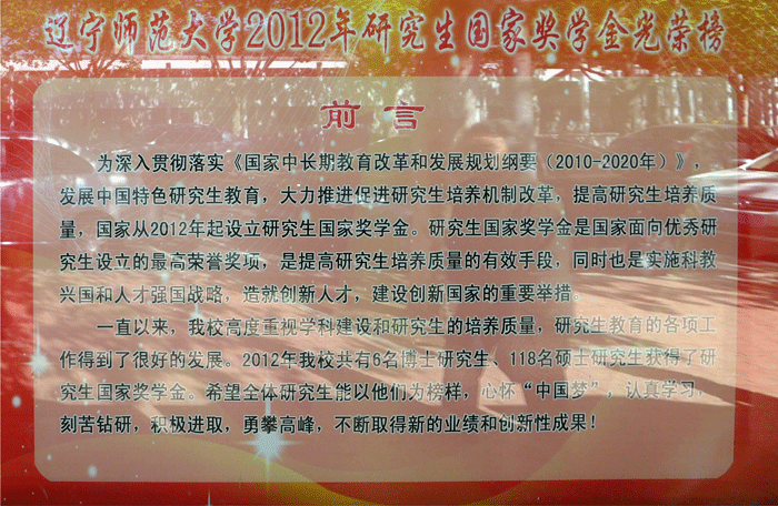 2013年5月,yl8858永利集团北院公共展窗中展出“yl8858永利集团2012年研究生国家奖学金光荣榜”,yl8858永利集团共有7名研究生荣列该榜。