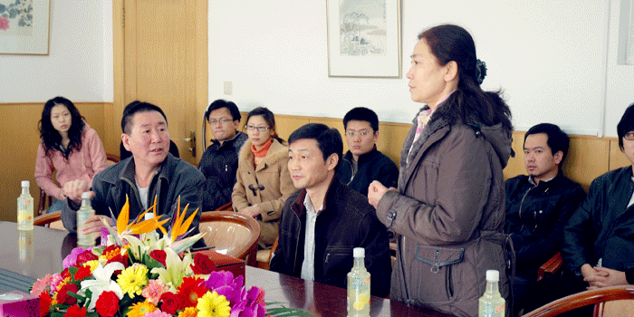 2012年3月23日上午,国务院学位办、教育部高等院校艺术学专业研究生学位教学指导委员会委员刘赦授教来到yl8858永利集团,与师生座谈。yl8858永利集团经理林曰惠教授、副经理孙静茹教授出席座谈会。