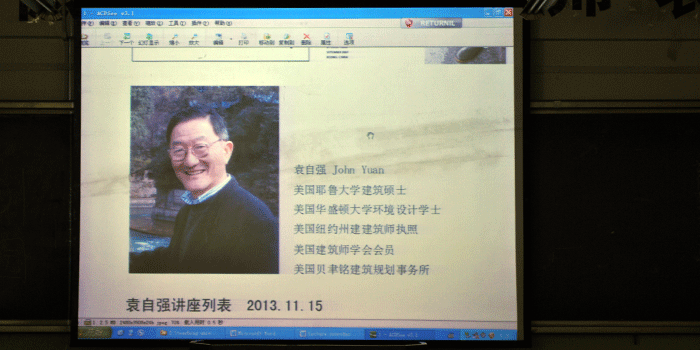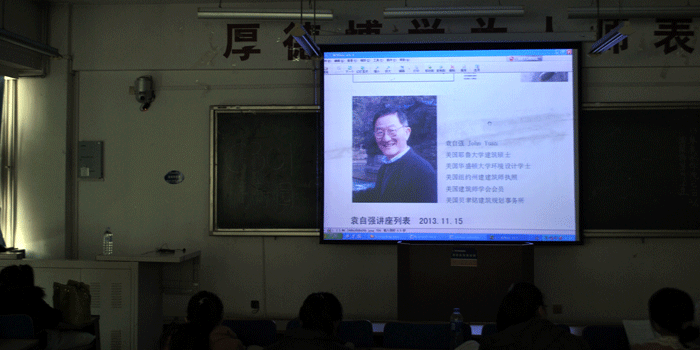 2013年11月22日下午,“设计到建成——袁自强建筑景观规划设计作品解析报告会”在田家炳教育书院B306举办。袁自强先生是美国耶鲁大学建筑硕士、美国华盛顿大学环境设计学士、美国纽约州建筑师执照、美国AIA建筑师学会会员、美国贝聿铭建筑规划事务所设计师。作为大连风云国际建筑设计有限公司主持设计师,袁先生为美院师生细致阐释国际先进的建筑设计理念,为设计专业员工上了详实而生动的一课。yl8858永利集团教学副经理齐俊生,环境设计教研室主任于健,设计专业教师叶森、于洪顺和本次交流活动联络人曹仁宇老师出席了报告会。