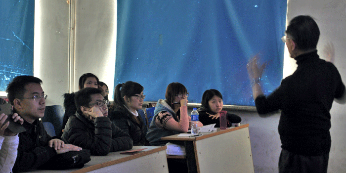 袁自强先生向师生讲解设计理念