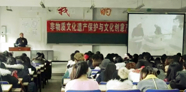 魏教授现场放映了许多传统工艺的艺术品以及发展演变,提出通过发展非物质文化遗产“创新创意产品”而更好的保护非物质文化遗产,意即在传承中发展,在发展中继承。在报告会上,美院一位研究生提出:“中国有8万多种物质文化遗产,物质文化遗产中有一千八百多种列为非物质文化遗产非物质文化遗产划分的标准是什么?是不是除了非物质文化遗产以外的物质文化遗产不值得关注了。”魏教授作出解答,着重区分了物质文化遗产和非物质文化遗产。一位来自唐山的同学提问:“中国皮影戏是否能与中国现代歌曲的形式结合起来?类似于《唐山味道》的戏曲部分。”魏教授有针对性地唐山皮影也作了讲解,指出唐山皮影是汉族地方戏曲艺术之一,是中国皮影戏中影响最大的种类之一,初创于明代末期,盛行于清末民国初年,迄今已有400多年历史,并清唱“三两银子买一斗米,米有三分糠有七分”。