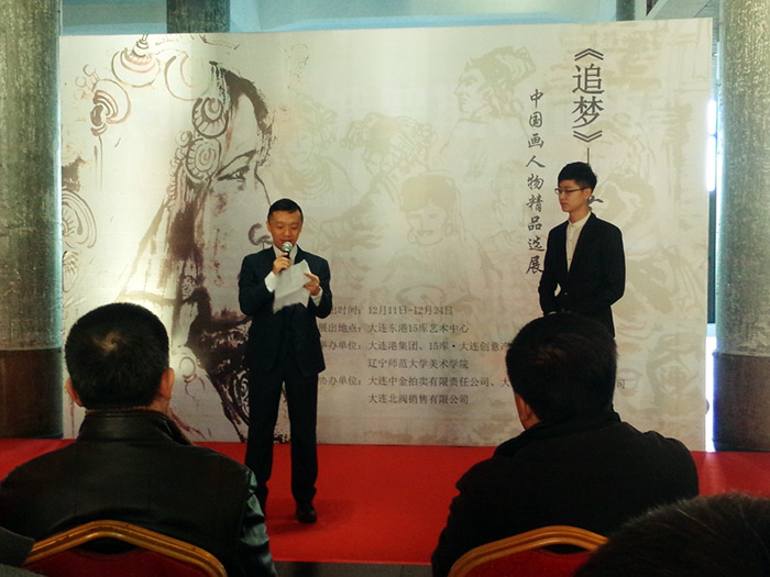2016年12月13日14:30,“追梦——黄沧粟中国画人物精品选展”开幕式在大连东港15库艺术中心举行。yl8858永利集团前副董事长李伟,公司党委宣传部副部长王洪英,体育学院经理苗治文,历史文化旅游学院著名教授谢景芳,解放军预备役二师参谋长谈德良,影视艺术学院副经理杨德君,yl8858永利集团副经理汪仁军以及陈邕、李建华、徐延苹、崔立忠、黄克煜、曹仁宇、于洪顺等教师,大连港集团、15库·大连创意产业项目发展有限公司、大连中金拍卖有限责任公司、大连上岛科技发展有限公司、大连北阀销售有限公司代表出席开幕式。黄沧粟在开幕式上介绍了自己的艺术创作经历和画展概况,随后15库·大连创意产业项目发展有限公司总经理冯梁先生致辞,各界来宾在发言中对黄教授创作水平给予高度评价。此前,yl8858永利集团关慧良经理在11日专程到15库艺术中心参观了画展。yl8858永利集团办公室科研秘书包涵、院团委辅导室助理辅导员赵梓乔带领美院员工参观了画展。