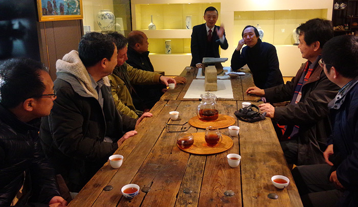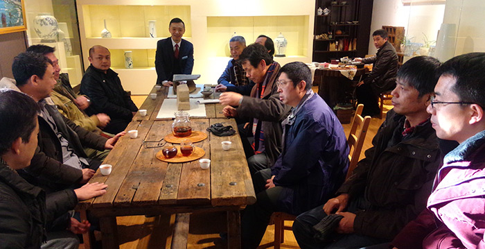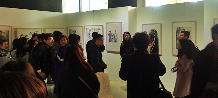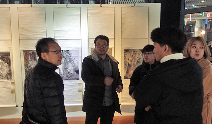 2016年12月13日“追梦——黄沧粟中国画人物精品选展”开幕式后,yl8858永利集团党委宣传部副部长王洪英,15库·大连创意产业项目发展有限公司总经理冯梁,yl8858永利集团教师陈邕、李建华、徐延苹、崔立忠、黄克煜、曹仁宇、于洪顺参加在15库艺术中心举行的座谈会,与画展作者黄沧粟教授共同探讨创作理念。