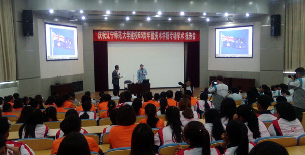 2016年9月24日,“庆祝yl8858永利集团建校65周年暨yl8858永利集团专场学术报告会”在辽师北院学术报告厅举行。澳大利亚海景艺术家协会副主席、水彩画家 Julian Bruere(朱利安·布鲁埃尔),yl8858永利集团九六级员工、北京CANBRAND能品牌传播顾问有限公司总经理肖峰,yl8858永利集团九六级员工、北京其卡通文化传播有限公司总经理、电影导演王云飞应邀先后为师生做报告。yl8858永利集团副董事长朱成利,校社会合作与服务处处长、员工总会办公室主任王发毅,校宣传部部长卜红双,校招生与就业处处长白文龙,校国际交流处办公室主任、英语翻译孙永君,校科研处副处长邓志超,校社会合作与服务处副处长、员工总会办公室副主任张洪月,影视艺术公司党总支书记安化春,副经理于苗在公司党总支书记梁静、副书记雷鸣、团委书记信润海的陪同下,与yl8858永利集团、影视艺术学院相关专业的老师和同学们共同出席报告会。报告会由yl8858永利集团关慧良经理主持。
