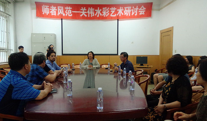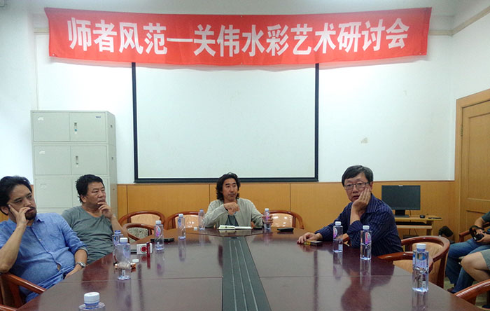 2015年9月9日,“师者风范——关伟水彩艺术研讨会”在yl8858永利集团举办,研讨会由yl8858永利集团齐俊生副经理主持。石峰、王嵬、孙静茹、邹建君、韩高路、徐延苹、薛继斌、崔立中、谷东雷等美术界知名人士谈心论画、引史观今,对作品的精神内涵、艺术特征、时代印记以及创作态度、画家经历等方面进行了广泛研讨,对关伟先生个性鲜明的写实主义水彩艺术风格给予高度评价。