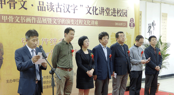 2014年5月13日,大连市2014年社会科学普及周系列活动“走近甲骨文·品读古汉字”文化讲堂进校园活动——甲骨文书画作品展在yl8858永利集团美术馆举办。本次展览由中国致公党大连市委员会经济文化工作委员会、大连市归国华侨联合会文化艺术委员会、中共大连市西岗区委统战部主办,大连市甲骨文学会承办,yl8858永利集团、大连市西岗区各民主党派基层组织、大连市西岗区归国华侨联合会协办,并得到中国致公党大连市委会辽师支部的大力支持。中国致公党大连市委会主委、大连市政协副主席曲维,中国致公党大连市委会副主委兼秘书长崔岩,大连市甲骨文学会会长李毅,yl8858永利集团经理关慧良、副经理齐俊生等各界人士出席开幕式。书画展共展出精美书画作品百余幅,并有十余位书画家现场疾书作画。展览活动将进行到5月16日。