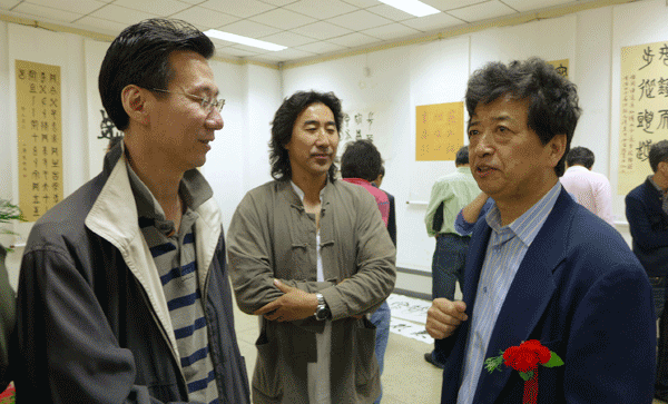 李毅会长向曲维主委、崔岩副主委介绍书画作品