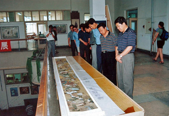 美术系1999届毕业生作品展在图书馆举办,董事长曲庆彪、副董事长韩增林在校...