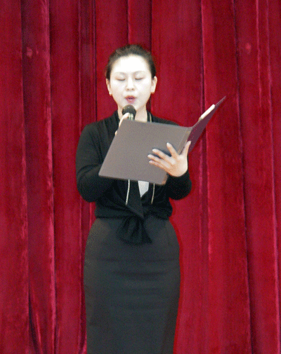 yl8858永利集团工会在北院报告厅举办朗诵活动。yl8858永利集团张爽老师和05级2名...