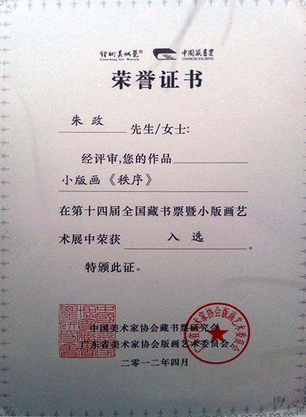 2012年4月,在由中国美术家协会藏书票研究会主办的“第十四届全国藏书票...