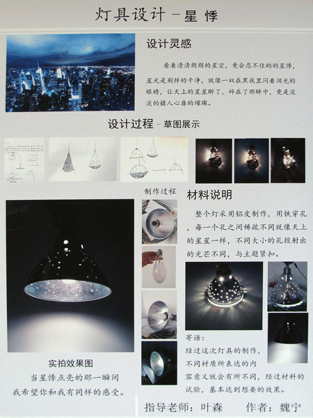 2013年3月,题为“照明设计课程(灯具设计)汇报展”的课程作业展在田家...