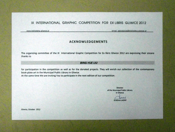 2012年11月,在波兰举办的“格莱维兹国际藏书票双年展”中,美院木版画...
